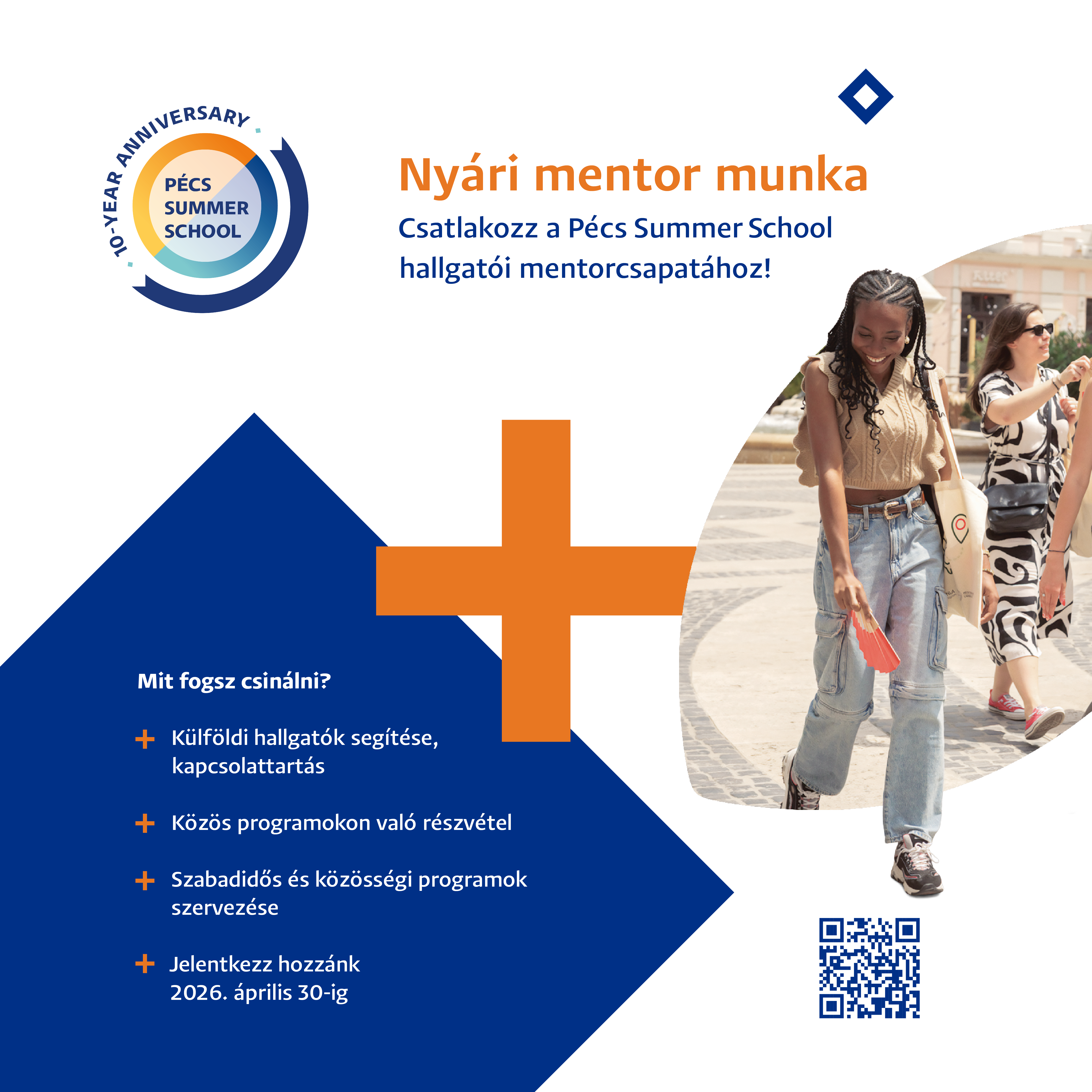 A Pécs Summer School programjaira keresünk nappali tagozatos, nem utolsó félévükben járó magyar hallgatókat, mentorfeladatok ellátására.