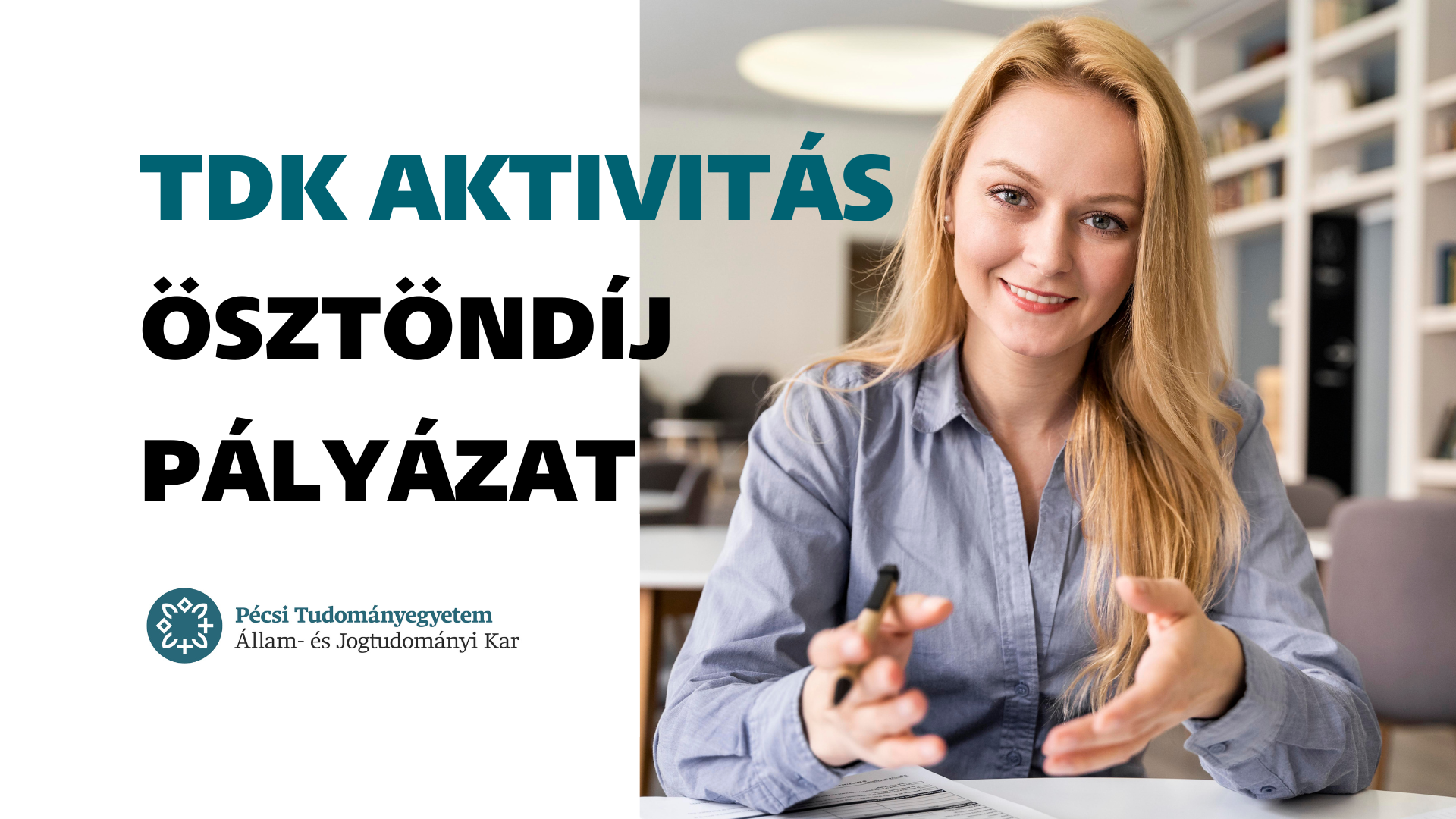 A Pécsi Tudományegyetem Állam- és Jogtudományi Kara (továbbiakban: Kiíró) a 2025/26. tanév őszi szemeszterére pályázatot ír ki a 37. Országos Tudományos Diákkonferencián legjobb opponensként, valamint a 2024/25. tanév tavaszi és a 2025/26. tanév őszi szemeszterében a kari Tudományos Diákköri Tanács (továbbiakban: TDT) által szervezett konferenciákon kutatásaik bemutatásával aktívan szereplő hallgatók számára, egyszeri ösztöndíjtámogatás elnyerésére.